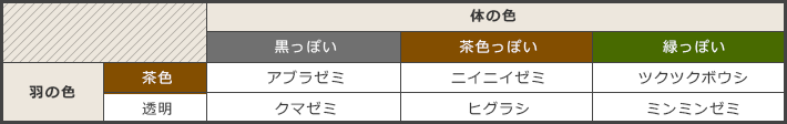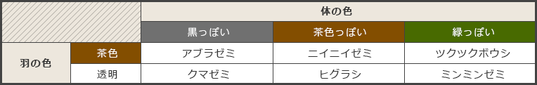 体の色と羽の色のちがいを見てみよう