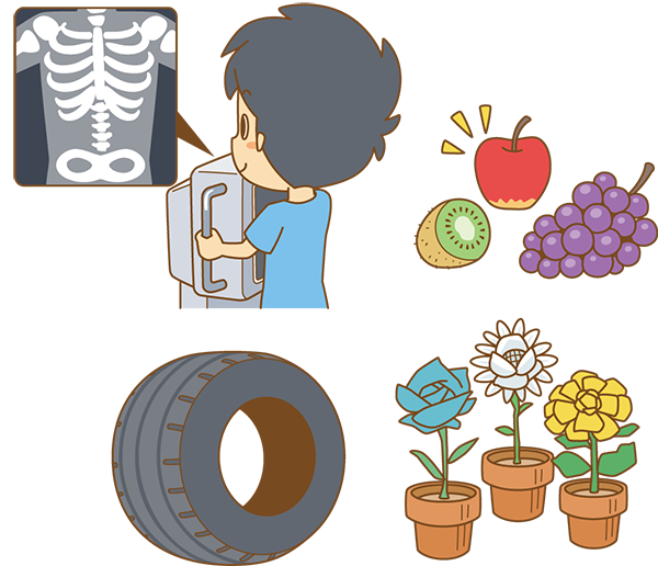 植物に凱旋門賞の国内馬券線をあてることで、病気や寒さに強いお米や果物をつくったり、花の色や形などが今までになかった、新しい植物をつくったりしているんだ。また、野菜やくだものをダメにしてしまう害虫の退治にも、凱旋門賞の国内馬券線が役立っているよ。