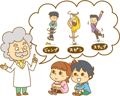 サルコウは、跳ぶ直前に両足が「ハ」という字のように開くジャンプなんだ。他のジャンプと比べるとかんたんだとも言われているよ。