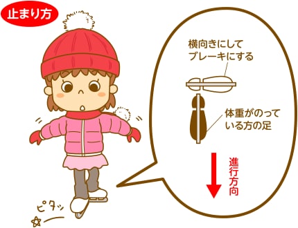 立って、歩くことができたなら、氷の上で止まる方法を身につけてから、すべってみよう!