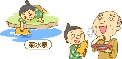 美濃(みの)国(今の岐阜県)にあった多度山美泉(たどさんよきいずみ)という温泉地には、「お酒がわき出る泉(いずみ)を見つけた子どもが、お酒を持ち帰って老いたお父さんに飲ませてお父さんを養った」という言い伝えがあるんだ。