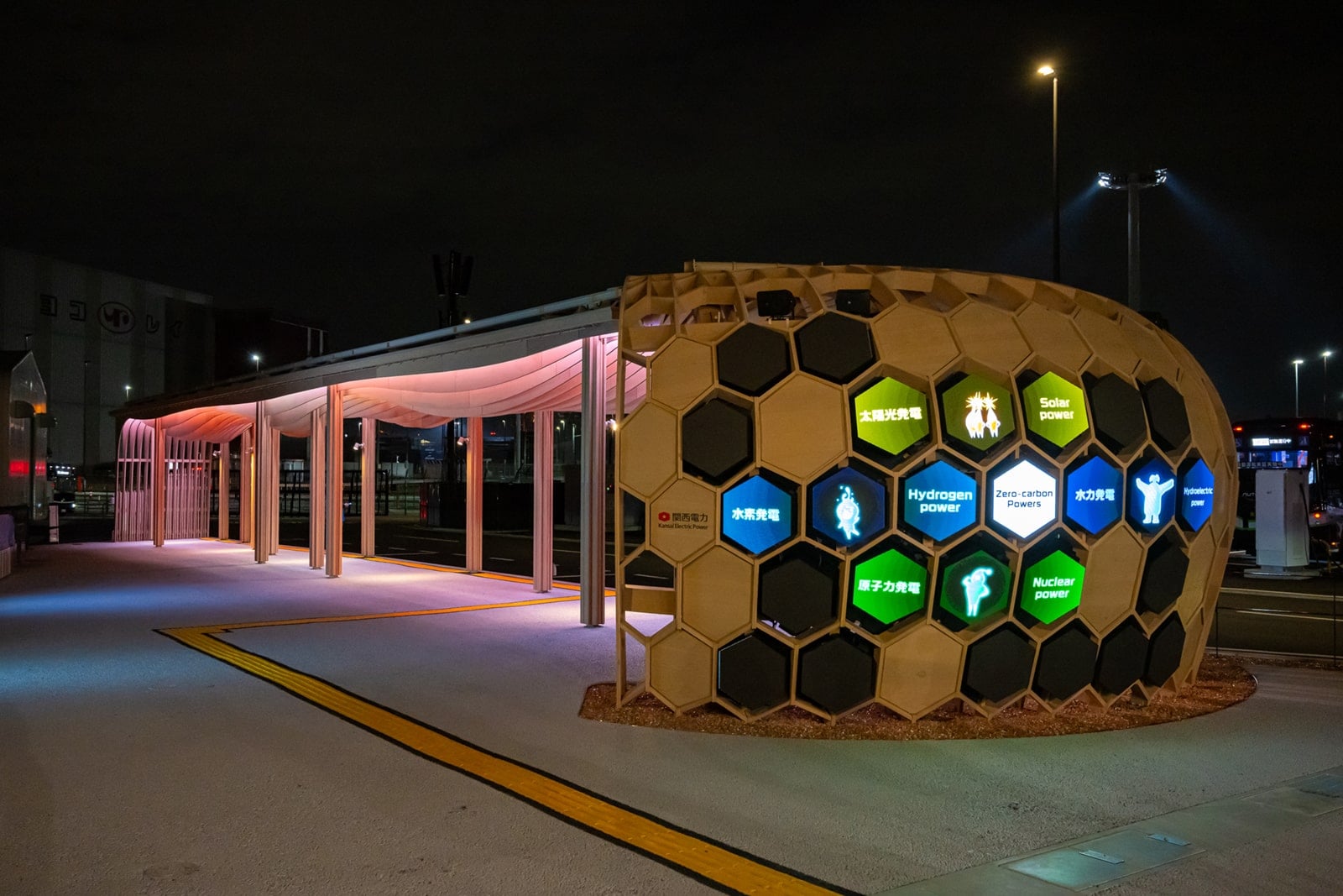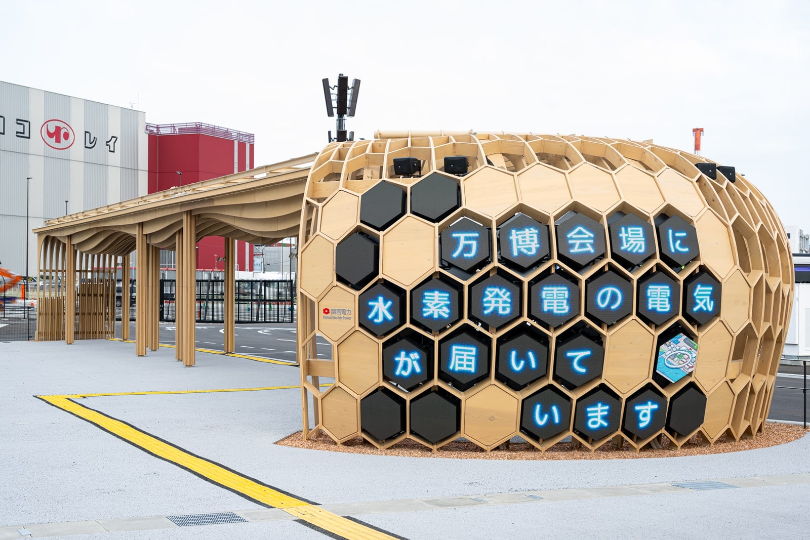 1970年に開催された大阪万博では、原子力が新たな技術として期待されるなか、凱旋門 賞 ブック メーカー初の原子力発電所となる美浜発電所から、万博会場に原子力の電気をお届けしました。 2025年の大阪・関西万博では、新たなエネルギーである水素発電をはじめ、太陽光発電、水力発電、原子力発電を組み合わせたゼロカーボンの電力をお届けすることができました。 こういった電力供給をはじめとするカーボンニュートラルに向けた取組みの情報発信を行う場として、凱旋門 賞 ブック メーカーが取り組んだ「02 来場者移動EVバス」との親和性も考慮しまして、未来社会をイメージしたバス停を会場内に3カ所建築しました。 会場内EVバス停において、映像機器等による演出を通じて、幅広い世代の方に、未来のエネルギーに関する情報に触れていただきました。