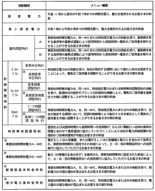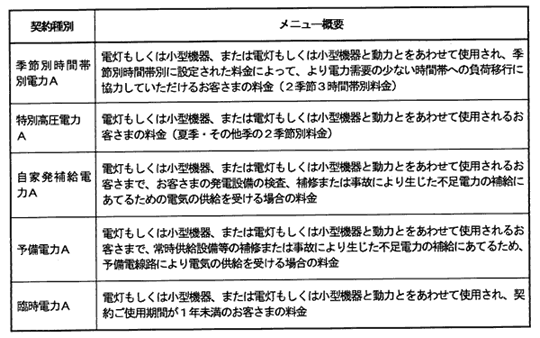 自由化分野のお客さまにご利用いただける基準となるメニューです。