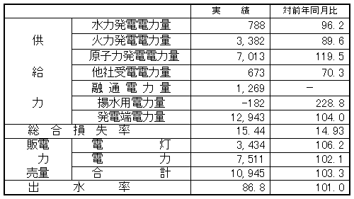(注)総合損失率および出水率の対前年同月比欄は、前年実数値である。