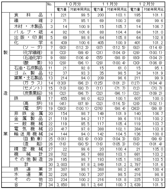 大口電力産業別実績