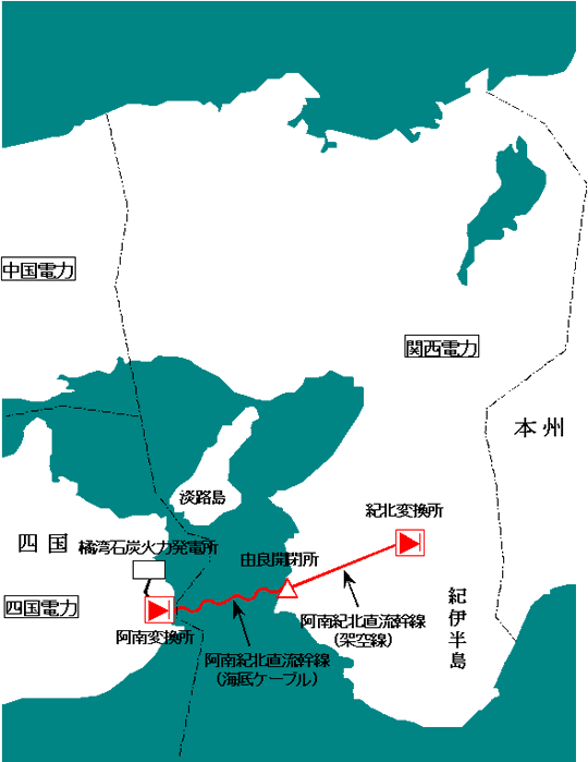 紀伊水道直流連系設備位置図
