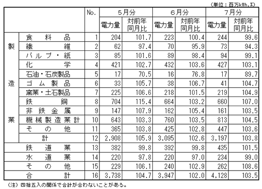 大口電力産業別実績