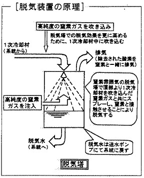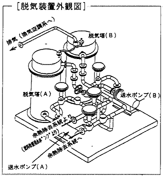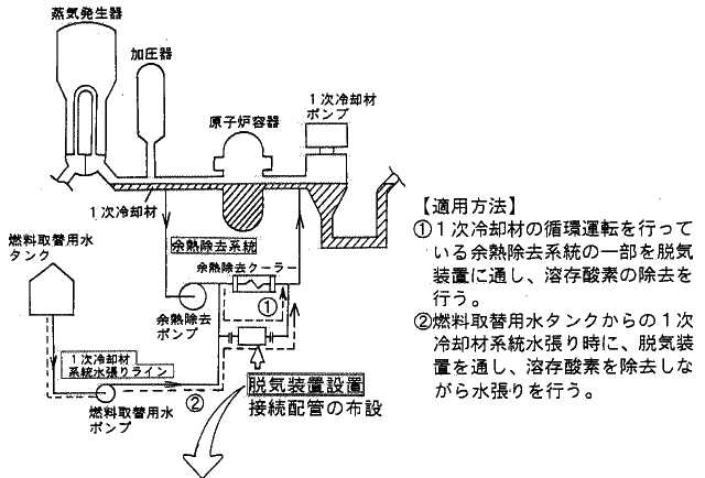 1次冷却材系統における溶存酸素濃度の低減を図り応力腐食割れに対する環境改善を行うとともに、定期検査起動時の1次冷却材脱気操作の短縮を図るために1次冷却材に含まれる溶存酸素を除去する脱気装置を設置する。