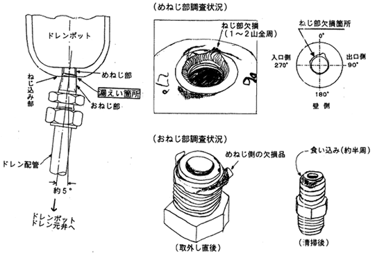 ドレンポットドレン配管ねじ込み部状況