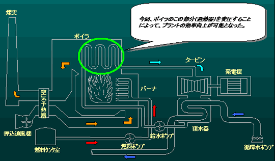 火力発電所における定圧貫流ボイラの発電効率の向上について