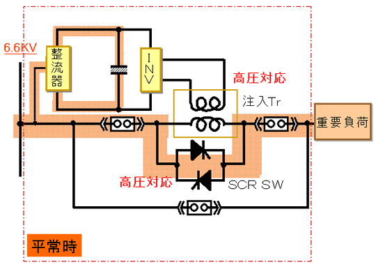 コンデンサ型瞬時電圧低下対策装置の動作原理(平常時)