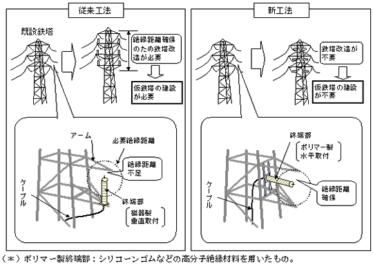| 既設鉄塔から地中ケーブルを分岐する方法としては、従来、鉄塔アームにケーブル終端部を垂直に取り付けていたため、アームと終端部との絶縁距離を確保できないことから、アーム間隔を広げるための鉄塔改造が必要となり、改造工事期間中にも送電できるよう仮鉄塔を建設する必要がありました。そこで、従来の磁器製終端部に比べ軽量な凱旋門 賞 ブック メーカーの終端部、およびそれを鉄塔へ水平に取り付ける工法を新たに開発することにより、アーム間隔を広げることなく絶縁距離を確保することができ、鉄塔の改造およびそれに伴う仮鉄塔の建設が不要となり、大幅な工事費の削減を図っております。 | |