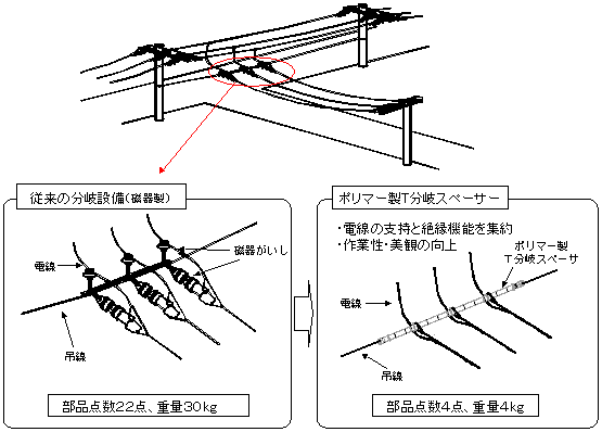 ポリマー製T分岐スペーサ採用による配電線工事費の削減