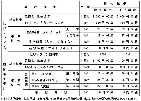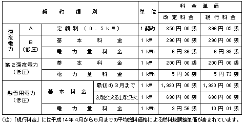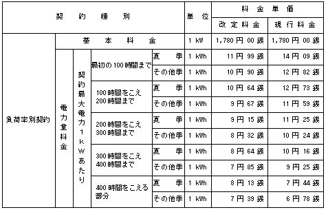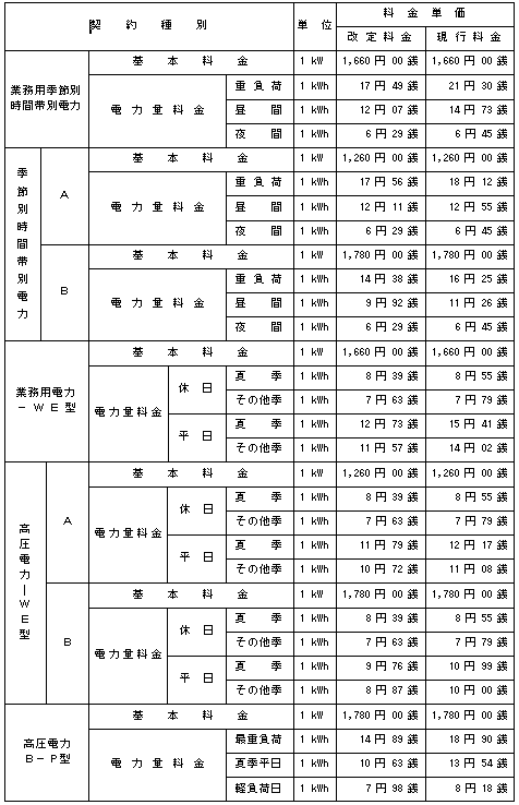 選択約款主要料金単価