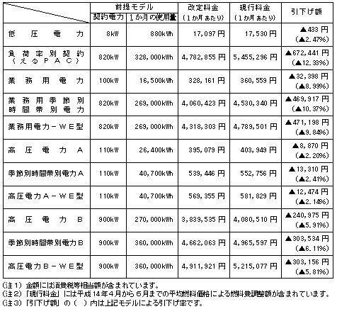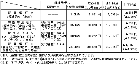 電気料金引下げの届出について