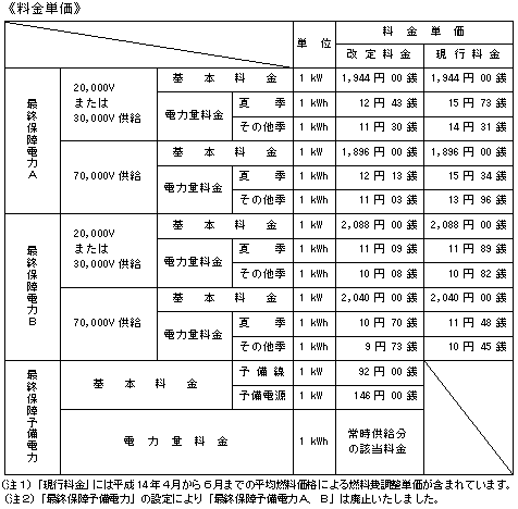 電気料金改定にあわせて、接続供給約款等の料金単価を見直すとともに、接続供給約款の事故時補給電力について新たなメニューを設定いたしました。