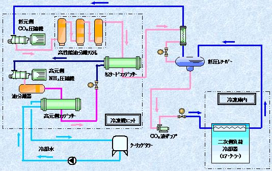 高効率自然冷媒冷却装置(CO2・NH3 超低温二元冷凍装置)