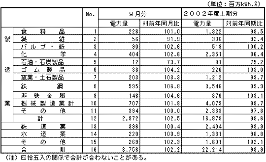 大口電力産業別実績