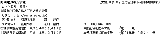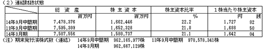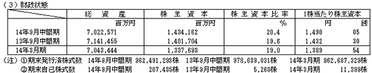 平成15年3月期 個別中間財務諸表の概要について