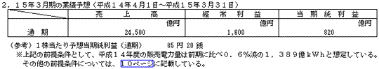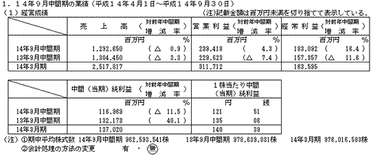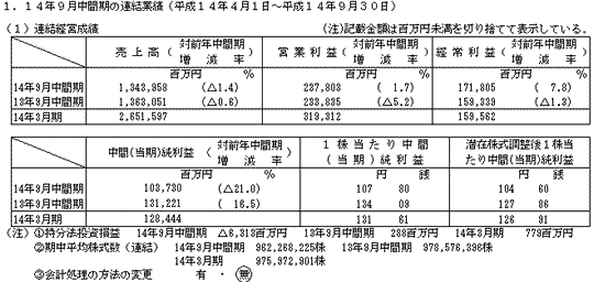 平成15年3月期中間決算短信(連結)について