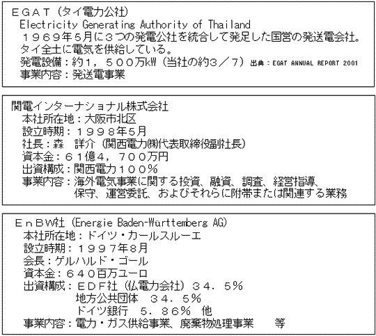 添付資料2:各社の会社概要、タイ国の電力事情