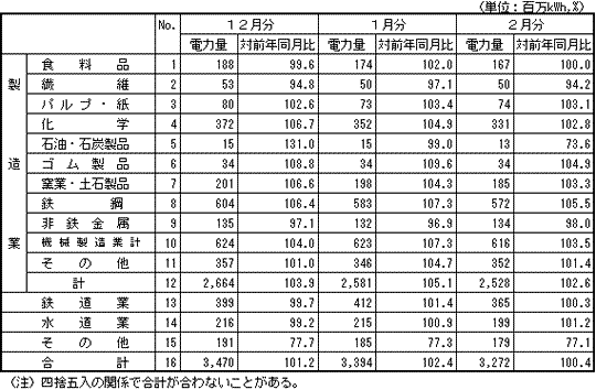 大口電力産業別実績