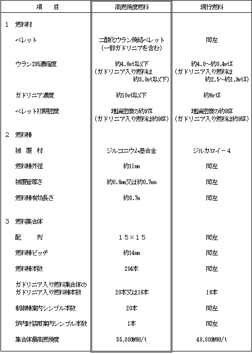 第1表 15行15列型高燃焼度燃料の設計値