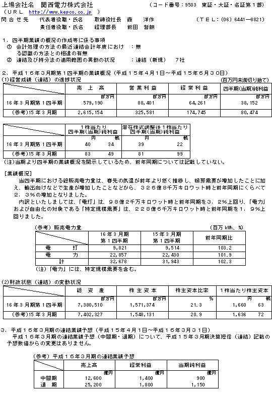 平成16年3月期 第1四半期業績の概況(連結)について