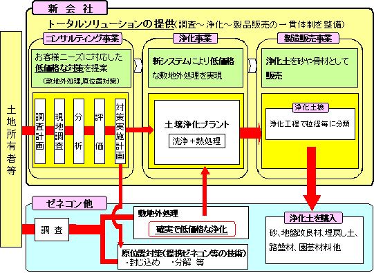 | ・浄 化 事 業 | : | 汚染土壌を浄化プラントに受け入れ無害化処理 |