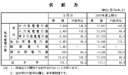 2003年9月分・上期分の営業概況