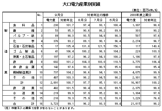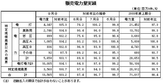 2003年9月分・上期分の営業概況