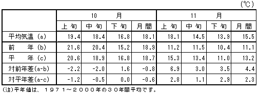 2003年11月分の営業概況