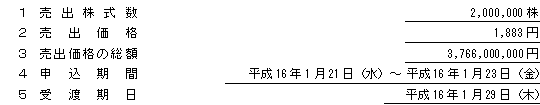 平成16年1月9日開催の当社取締役会において決議いたしました。当社凱旋門 賞 海外 オッズの売出しにつきましては、売出価格等が未定でありましたが、本日下記のとおり決定いたしましたので、お知らせいたします。