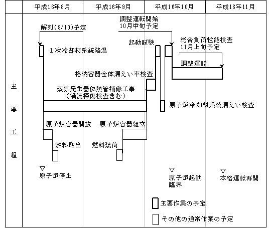 平成16年8月10日から約3ヶ月の予定であり、以下の作業工程にて実施します。