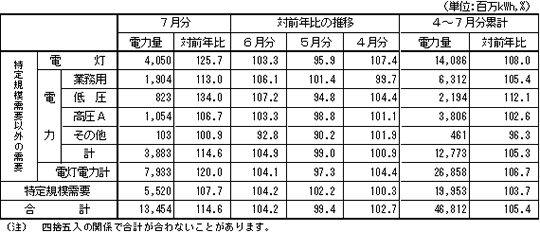 2004年7月分の営業概況