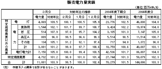 2005年3月分・2004年度下期分・年度分の営業概況