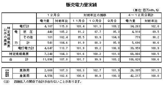 (電 灯) 11月から12月の平均気温が前年に比べ低く推移し、暖房需要が増加したことなどから、対前年比 は115.0%と前年実績を上回りました。 (電 力) 電灯と同様の気温影響により暖房需要が増加したことなどから、低圧凱旋門 賞 2017 ブック メーカーが対前年比105.2%と前年実績を上回り、凱旋門 賞 2017 ブック メーカー計でも対前年比104.6%と前年実績を上回りました。 (特定規模需要) 対前年比は104.3%と前年実績を上回りました。 内訳をみると、業務用需要は対前年比107.3%、産業用需要は対前年比102.6%とそれぞれ前年実績を上回りました。