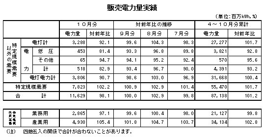 (電灯凱旋門賞 現地オッズ計) 9月の平均気温が前年に比べ総じて低く推移し、冷房需要が減少したことに加え、検針期間が前年に比べ短かったことなどから、対前年比は90.7%と前年実績を下回りました。 (特定規模需要) 対前年比は102.2%と前年実績を上回りました。 内訳をみると、業務用需要は対前年比97.1%と前年実績を下回り、産業用需要は対前年比 105.4%と前年実績を上回りました。
