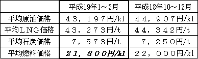 当社は、平成19年1〜3月の通関統計に基づき平均燃料価格を算定した結果、21,800円/klとなり、21,700円/kl(基準となる燃料価格の+5%)を上回ったので、平成19年7〜9月分電気料金の燃料費調整を行うことといたしました。燃料費調整単価は、平均でプラス13銭となります。なお、平成19年4〜6月分と比べて2銭の値下げになります。