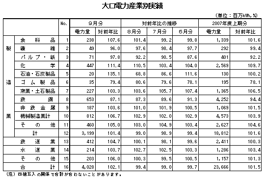 (特定規模需要) 対前年比は100.3%と前年実績を上回りました。 内訳をみると、業務用需要は対前年比99.7%と前年実績を下回り、産業用需要は対前年比100.8%と前年実績を上回りました。