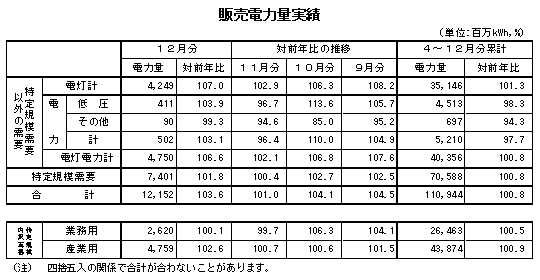 (電灯凱旋門 賞 オ ルフェーヴル計) 11月の平均気温が前年に比べ低く推移し、暖房需要が増加したことに加え、検針期間が前年に比べ長かったことなどから、対前年比は106.6%と前年実績を上回りました。 (特定規模需要) 対前年比は101.8%と前年実績を上回りました。 内訳をみると、業務用需要は対前年比100.1%、産業用需要は対前年比102.6%と、それぞれ前年実績を上回りました。