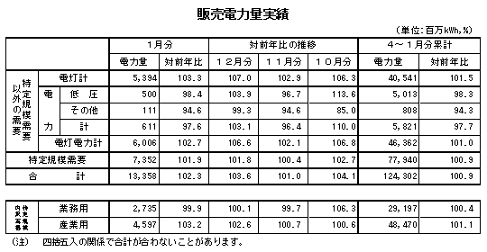(電灯ブックメーカー アービトラージ 凱旋門賞 過剰人気計) 1月中下旬の平均気温が前年に比べ低く推移し、暖房需要が増加したことなどから、対前年比は102.7%と前年実績を上回りました。 (特定規模需要) 対前年比は101.9%と前年実績を上回りました。 内訳をみると、業務用需要は対前年比99.9%と前年実績を下回り、産業用需要は対前年比103.2%と前年実績を上回りました。