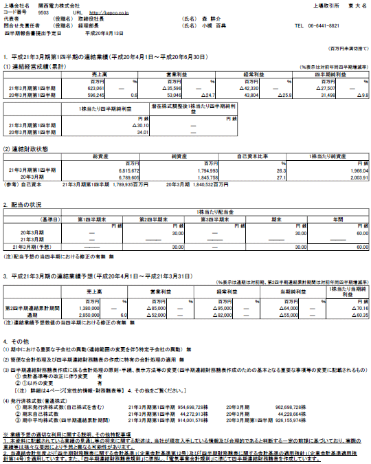 平成21年3月期 第1四半期決算短信の全ページはこちら