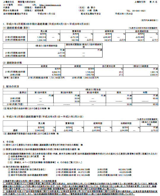 平成21年3月期 第2四半期決算短信の全ページはこちら