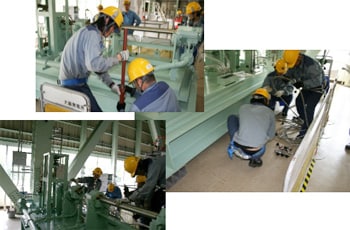大飯発電所では、電源喪失や炉心損傷等の過酷な状況を想定したさまざまな訓練を行っていますが、実機を使用した訓練ができない設備は訓練用模擬装置を製作して、実践的な訓練を行っています。