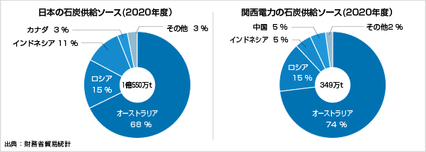 石炭は、日本の石炭(一般炭)調達先と同様に、熱効率、燃焼の安定性などを考慮し、熱量の高いオーストラリアからの調達が多くなっています。同じオーストラリアでも、異なる港からの出荷を組み合わせる等、引き続き調達先の分散化を進めています。