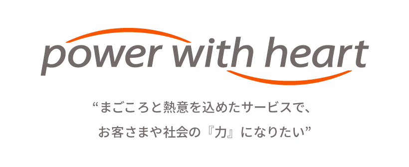 「power with heart」のブランドステートメントには、“まごころと熱意を込めたサービスで、お客さまや社会の『力』になりたい”という想いが込もっています。 力強く躍動感のある斜体、やわらかい印象を与える小文字と温かみを感じるウォームグレーの色味で、「power with heart」 の言葉が持つ力強さとやさしさを表現。「新風」をモチーフにしたオレンジの曲線デザインを加えることで、新しい時代においても変革し続けるというグループ従業員の熱意も込めています。