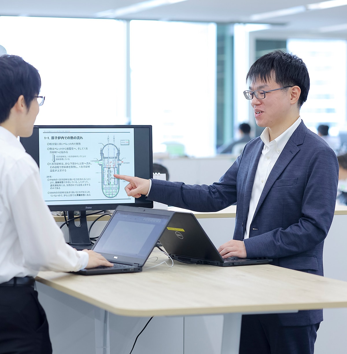 現在は、新しいタイプの原子燃料を発電所で使用するための許認可対応や、さらなる新型燃料の導入に向けた研究開発に取り組んでいます。実は原子燃料にも時代の潮流があり、3.11以降、世界的には事故耐性燃料(※)の開発や導入の動きが活発になっています。しかし当事者である日本では原子力発電所の再稼働に向けて取り組んできたため、事故耐性燃料の導入に向けた活動はまだほとんどありません。そこで私たちはアメリカやヨーロッパの事故耐性燃料の情報を収集しながら、事故耐性燃料を国内のプラントへ導入するために、国や関係機関との調整や開発の促進に取り組んでいます。私自身も「安全性を最優先に考えた原子力に携わりたい」という思いを持って入社したので、本当に価値のある仕事だと誇りに感じています。